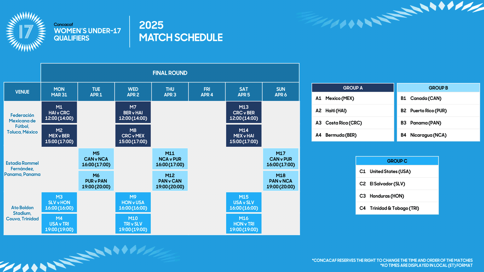 U 17 USWYNT Draw Results And Match Schedule For 2025 Concacaf Women s Under 17 Qualifiers Women s Soccer Express