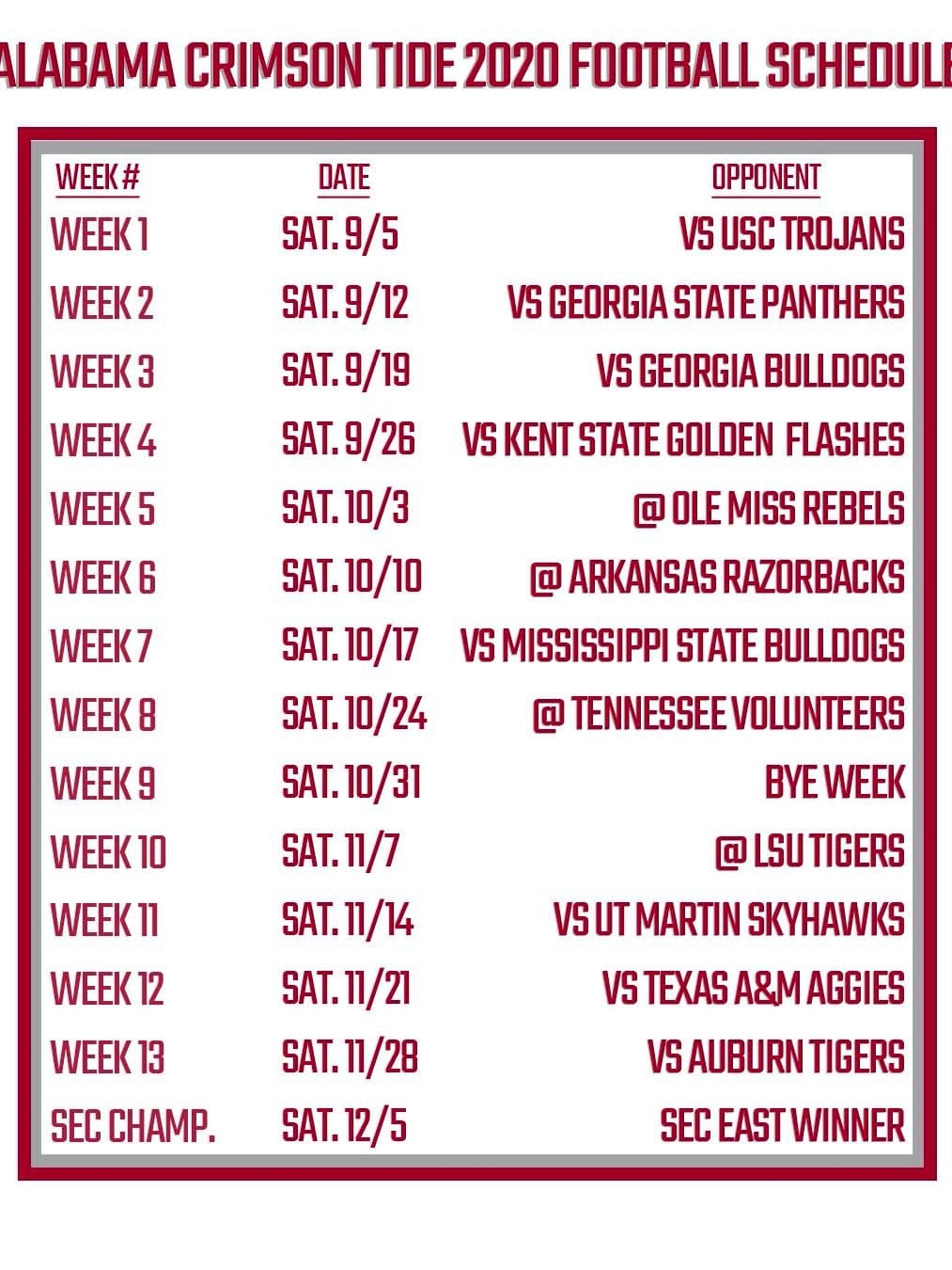 Printable Alabama Football Schedule 2020 FanDuel Research