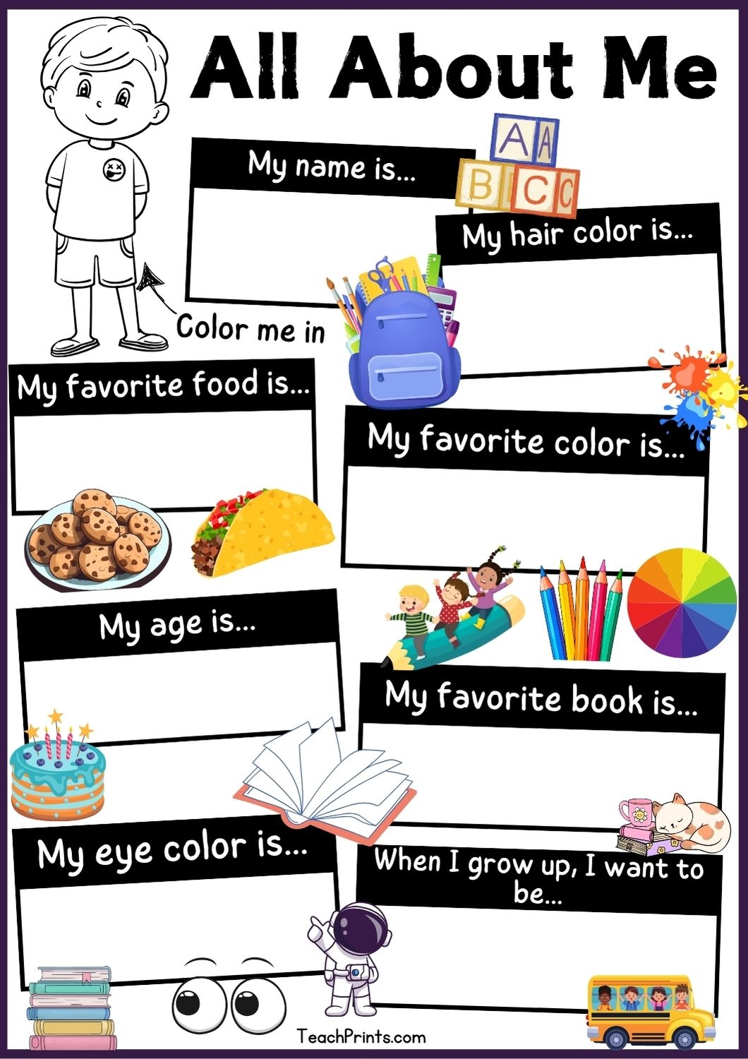 All About Me Printable Worksheets