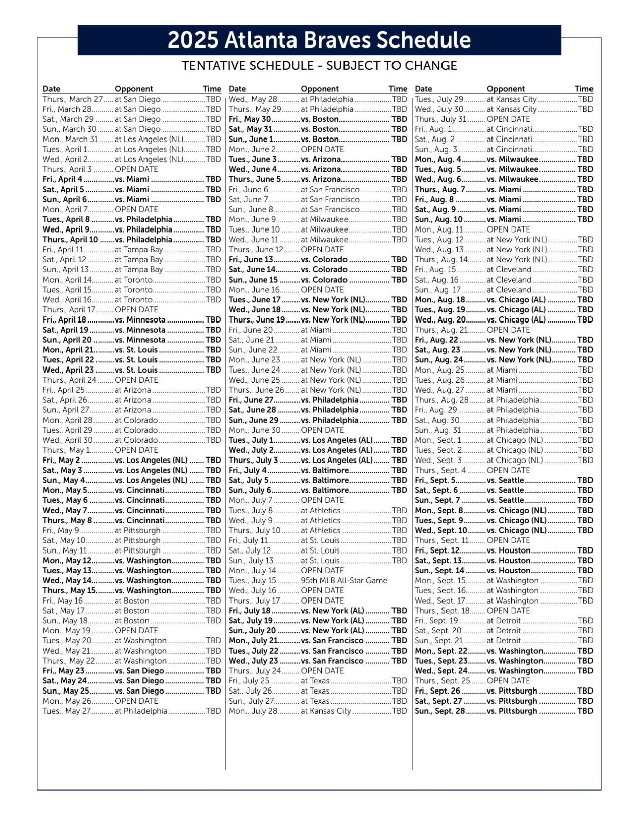 2025 Atlanta Braves Schedule