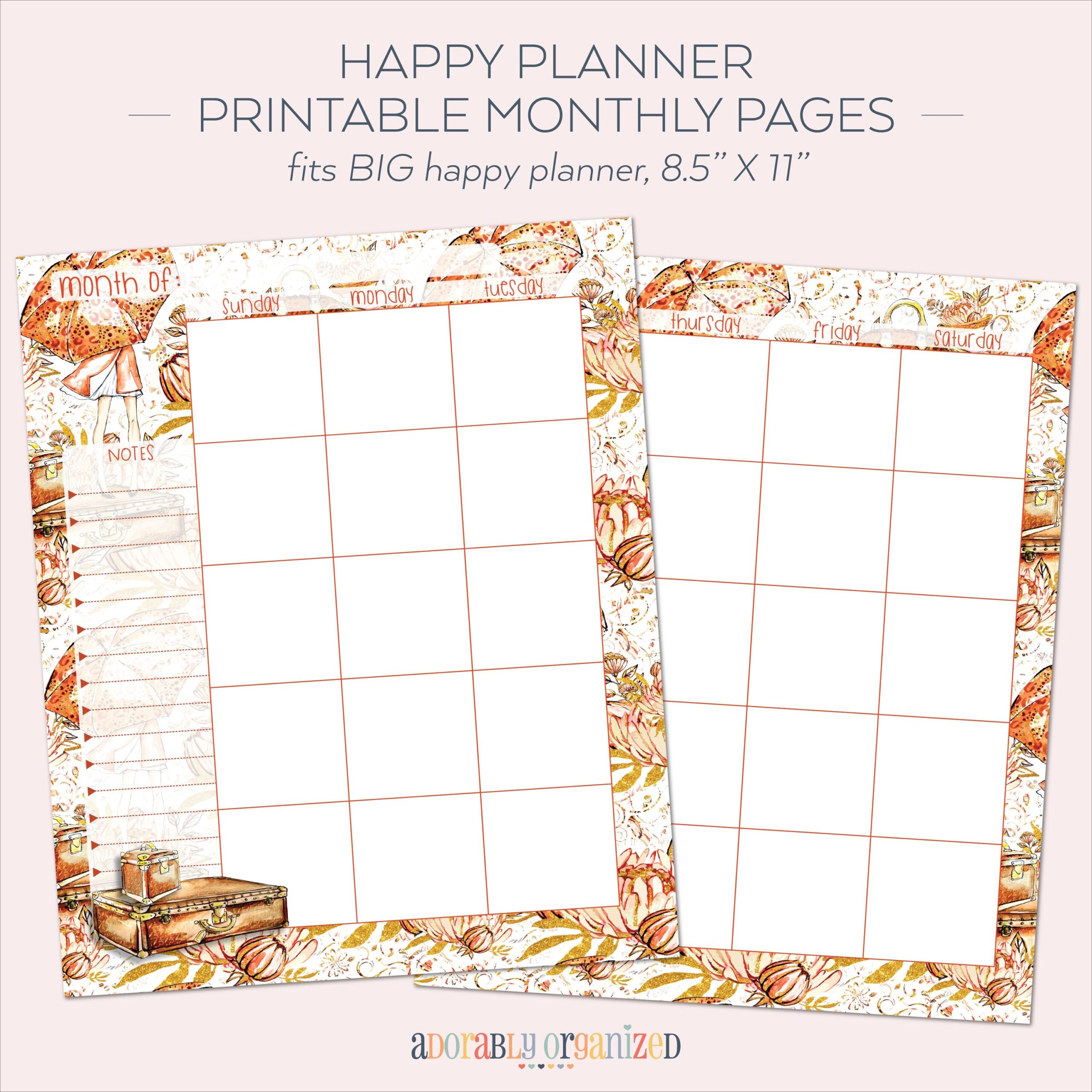 BIG HAPPY PLANNER Printable Monthly Planner Refills Inserts 8 5 X 11 Cozy Autumn Fall Floral Undated Monthly Layout Etsy