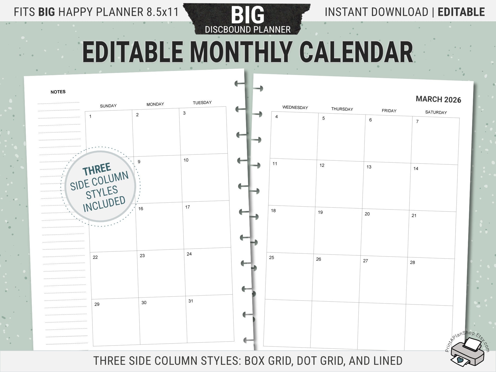 Editable BIG Happy Planner Calendar Inserts Printable Monthly Planner Pages Undated Digital Download PDF Etsy