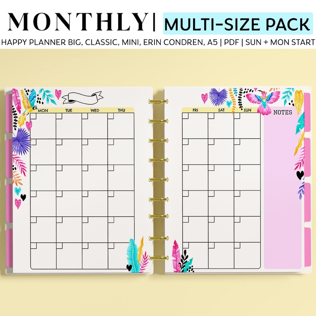 MONTHLY Planner Pages For Happy Planner Classic Big Mini Erin Condren And A5 Size Planners Summer Jungle Printable Planner Pages Etsy