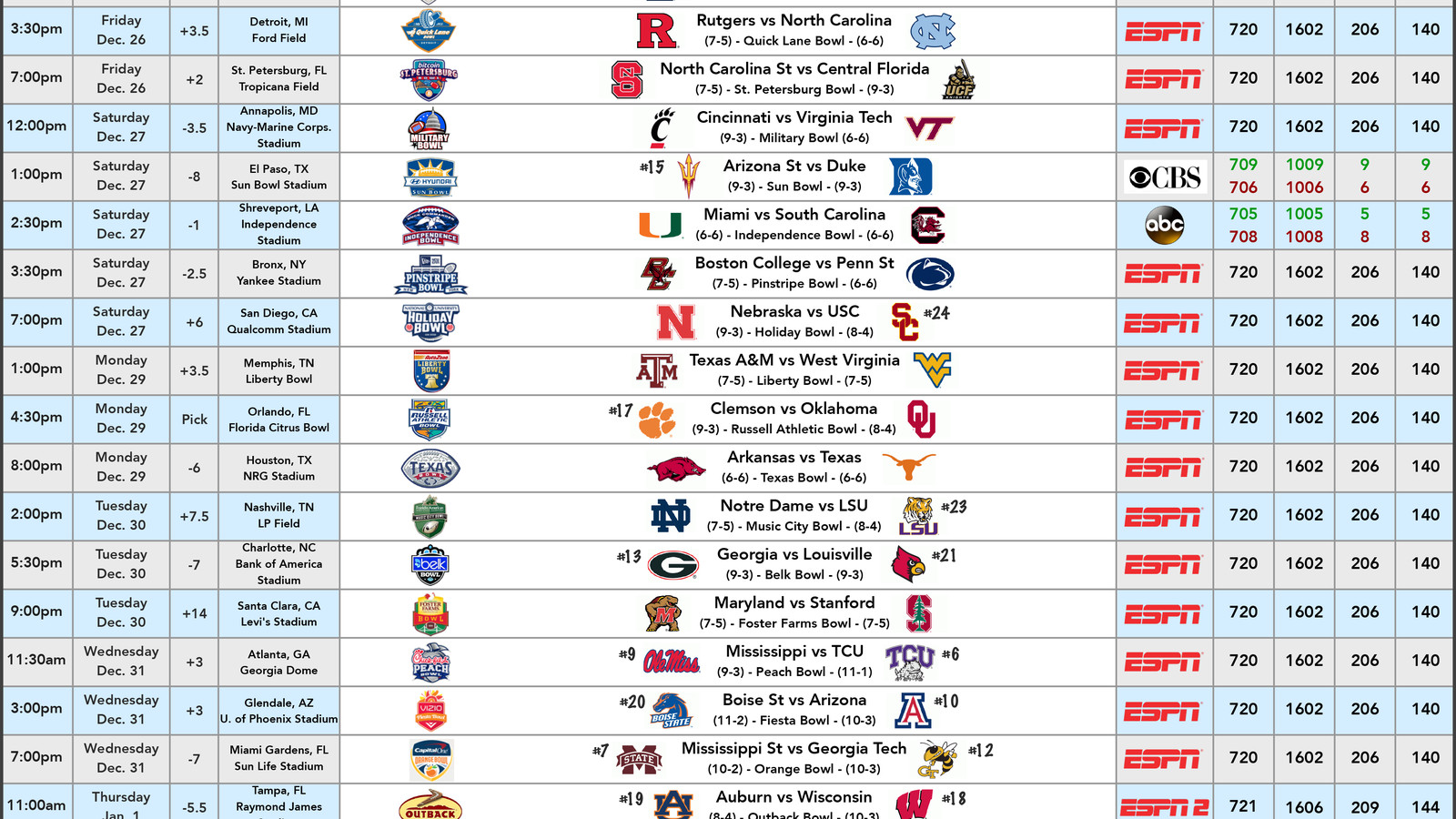 Complete Watch Guide For All 39 Bowl Games Cowboys Ride For Free