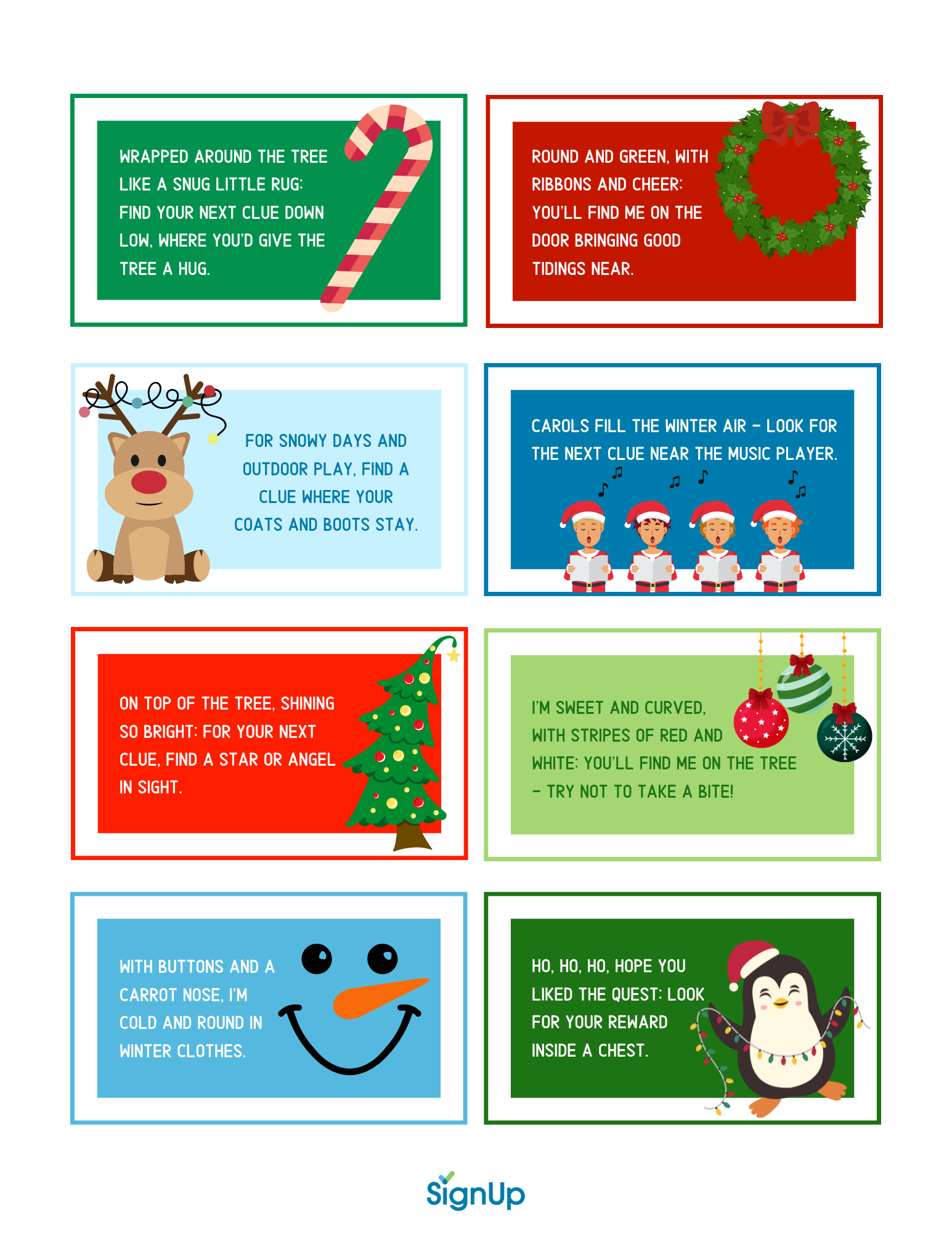 Get into the festive spirit with a Christmas scavenger hunt using printable clues. It’s a fun and interactive way to celebrate the holidays with your family and friends. So, start planning your scavenger hunt today and make this Christmas one to remember!