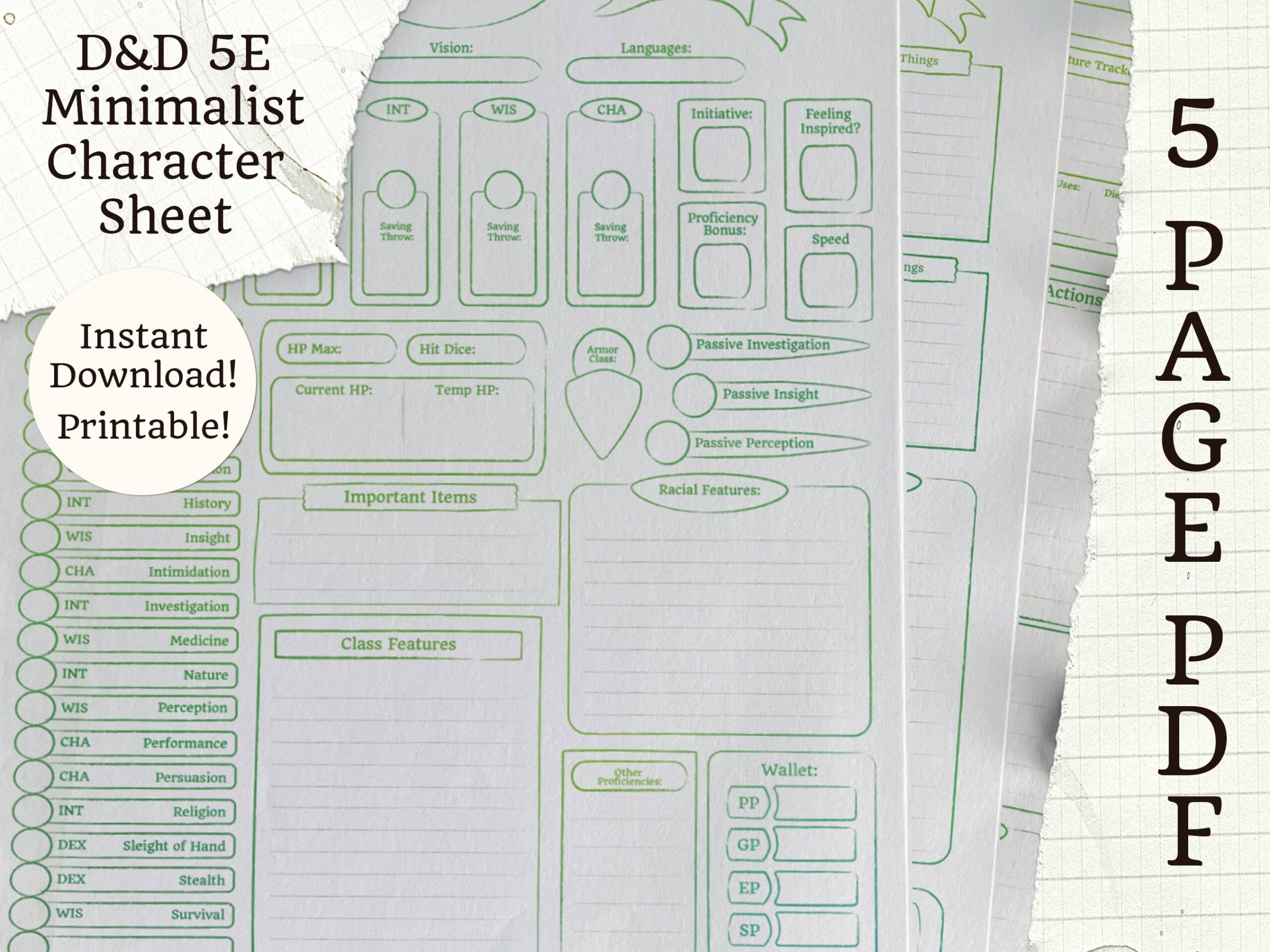 To create your own D&D 5E character sheet printable, all you need is a printer, some paper, and a character sheet template. There are many free templates available online that you can customize to fit your character’s unique abilities and stats.