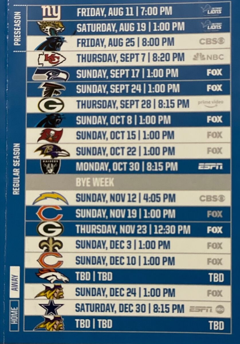 2023 DETROIT LIONS POCKET SCHEDULE NFL DRAFT 2024 GOFF HUTCHINSON CAMPBELL 90TH EBay