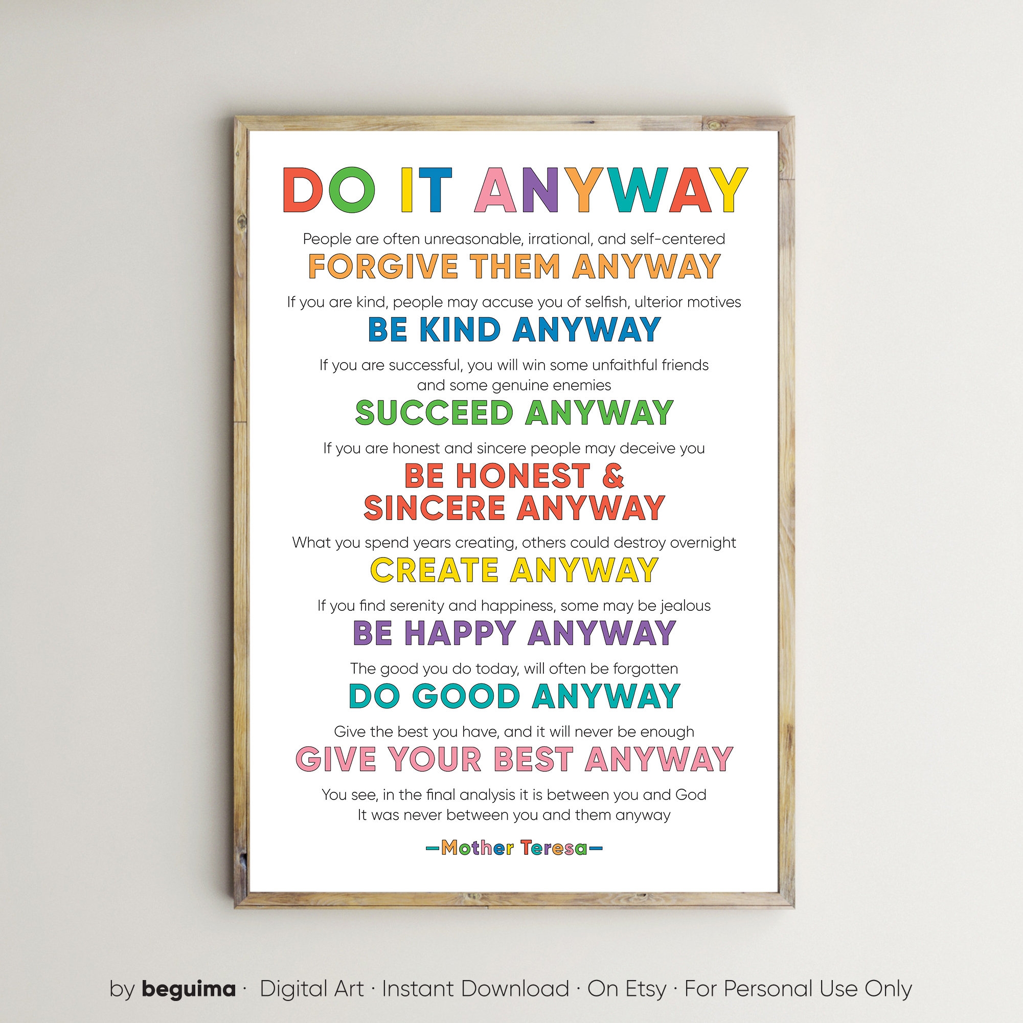 Do It Anyway Printable Poem Non religious Mother Teresa Quote Inspirational Wall Art Graduation Gift Positive Quote Office Home Decor Etsy