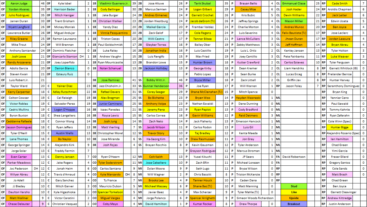 2025 Fantasy Baseball AL Cheat Sheet LABR Results