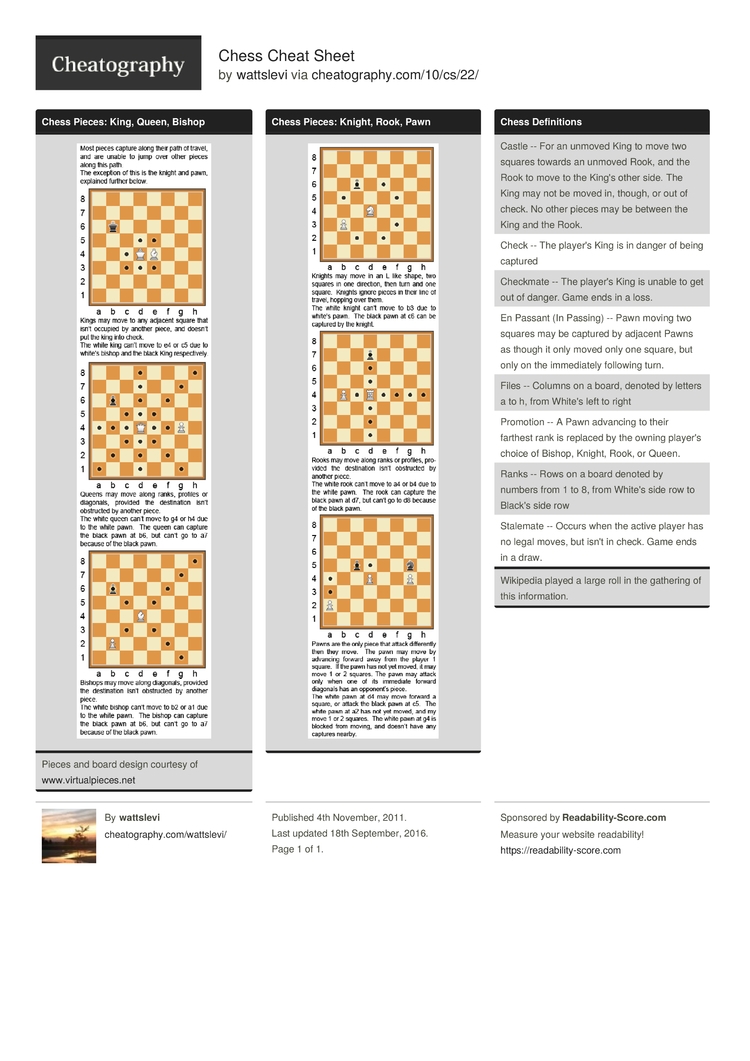 Chess Cheat Sheet By Wattslevi Download Free From Cheatography Cheatography Cheat Sheets For Every Occasion