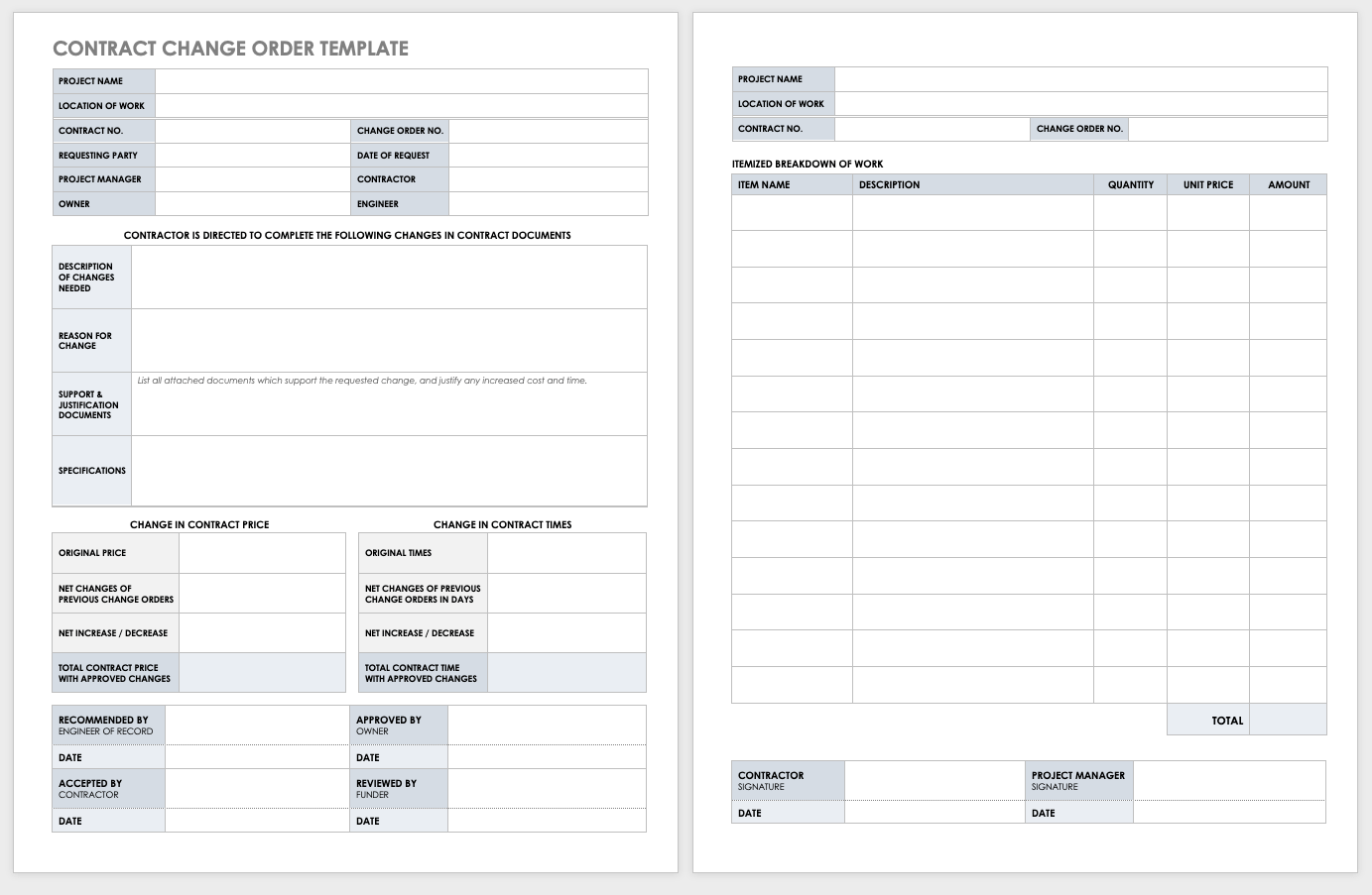 Free Change Order Templates Download Print Construction Forms In PDF Office GDocs