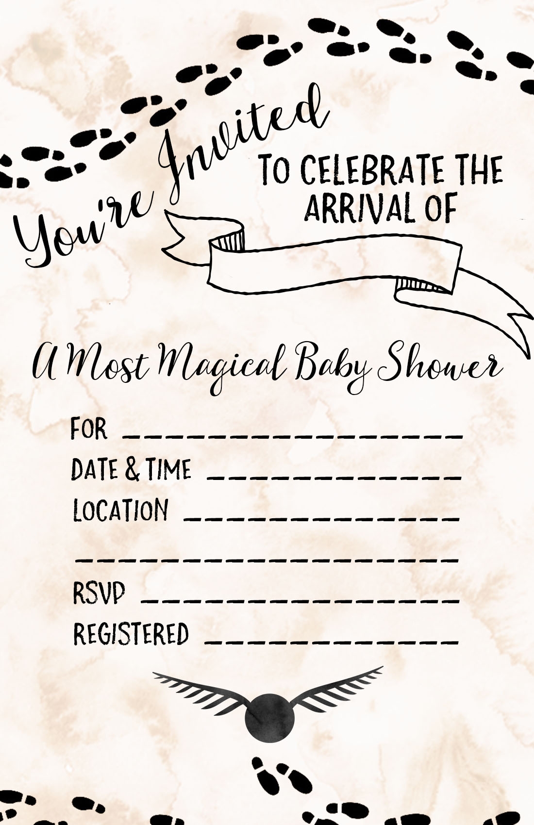 Our free printable Harry Potter invitations feature iconic symbols from the wizarding world, such as the Hogwarts crest, the Golden Snitch, and the Marauder’s Map. You can easily customize them with your party details and send them out to your guests.
