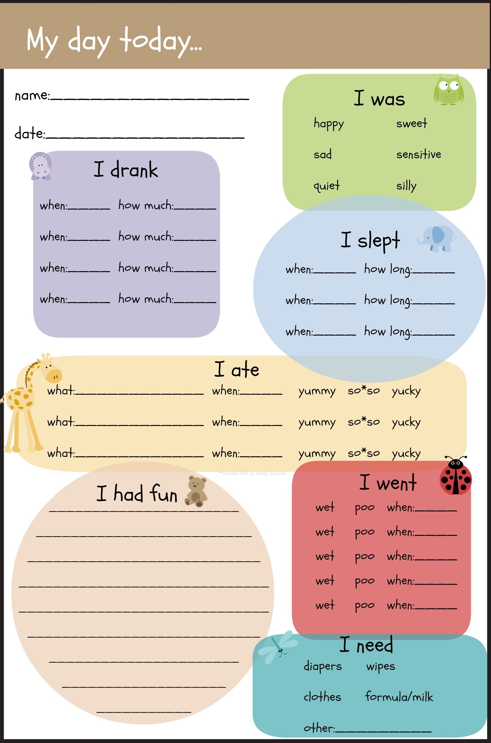 Preschool Daily Reports 10 Free PDF Printables Printablee
