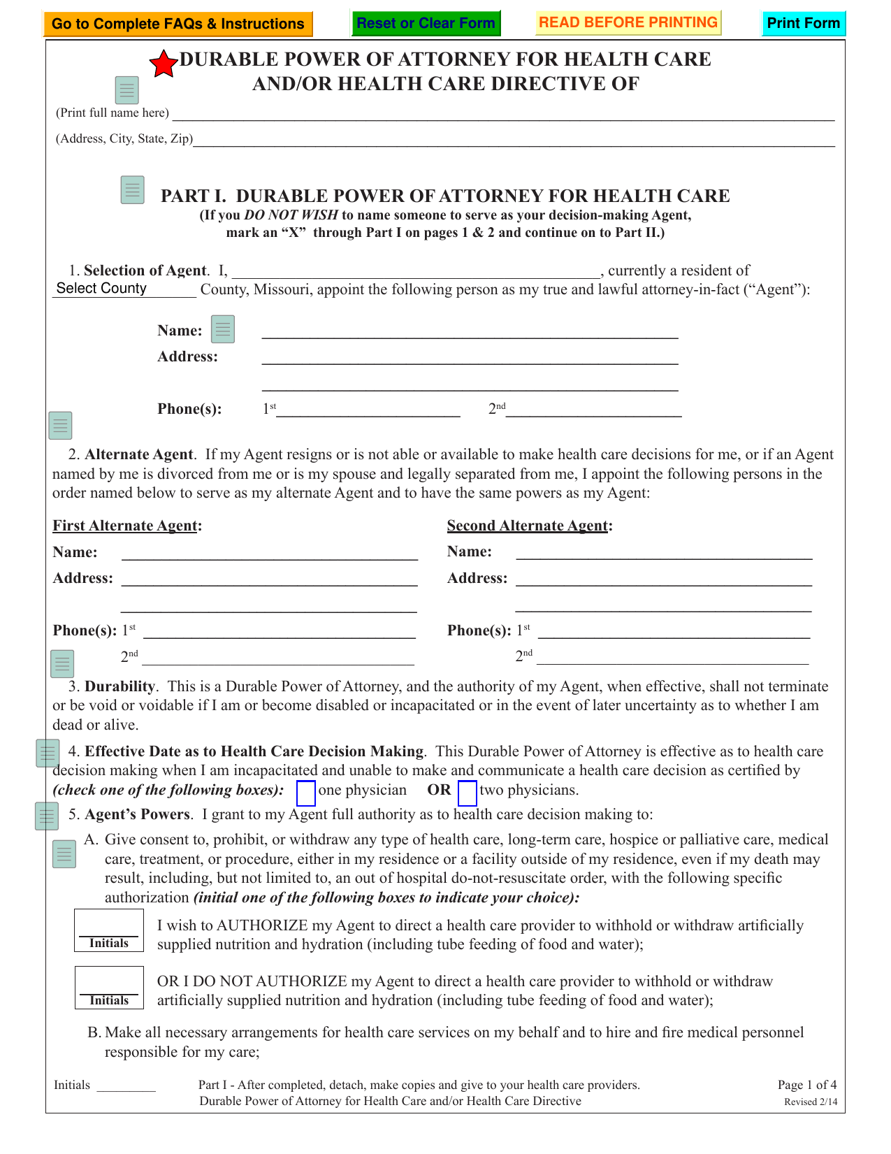 Download Missouri Living Will Form Advance Directive PDF FreeDownloads