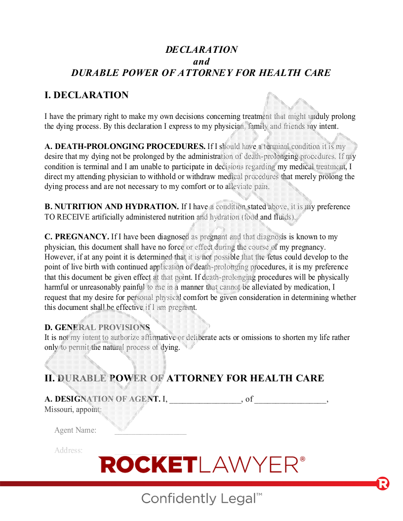 Free Missouri Living Will Make Download Rocket Lawyer