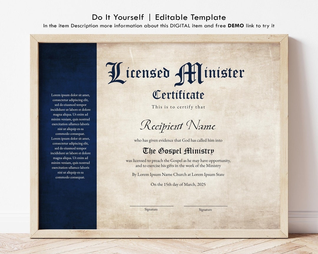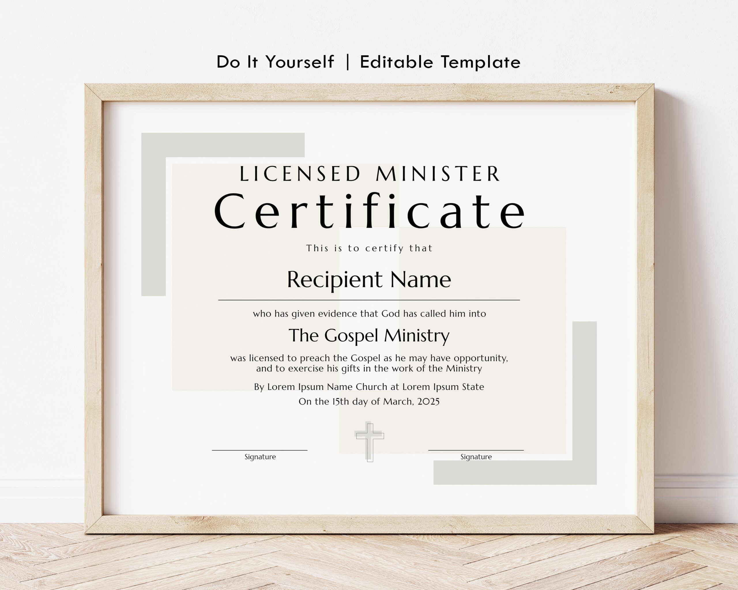 Licensed Minister Certificate Template Editable Printable Certificate Of License License To Preach Ordination Certificate Download Jet318 Etsy