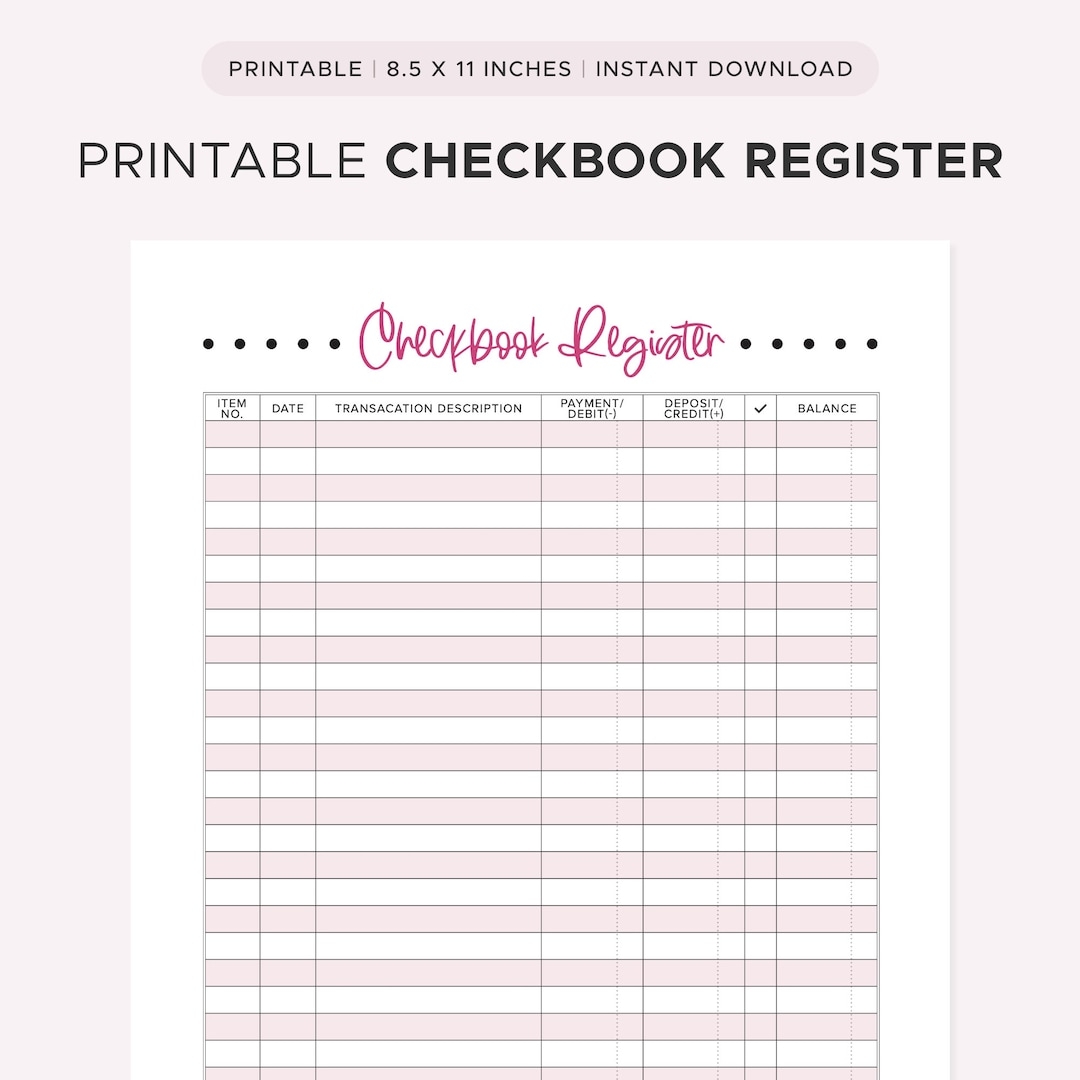 Printable Checkbook Register Cute Checkbook Register Printable Pink Etsy
