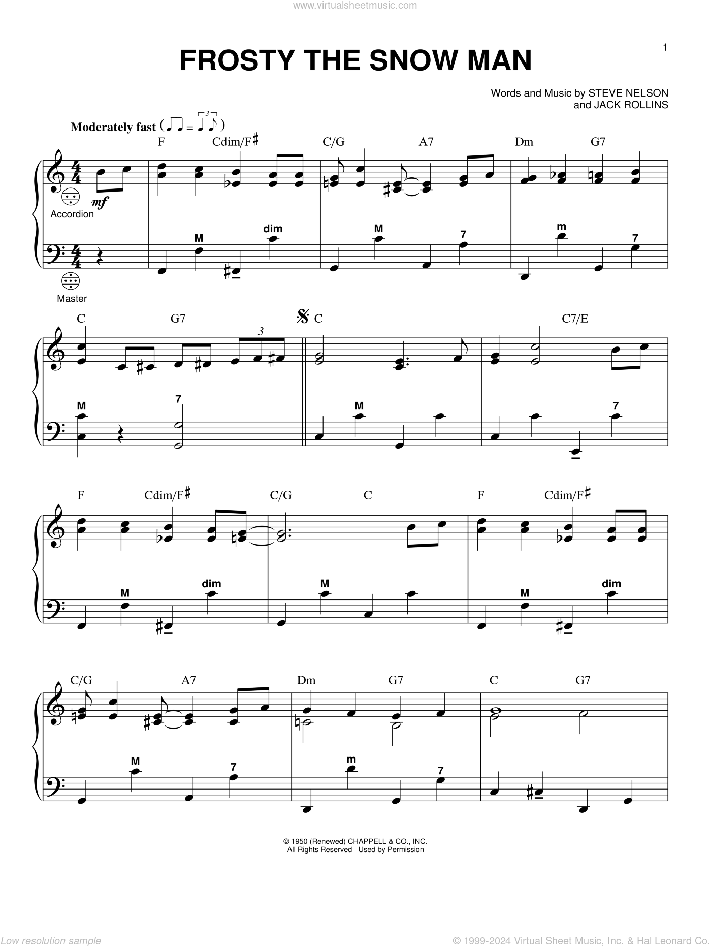 Frosty The Snow Man Sheet Music For Accordion PDF interactive