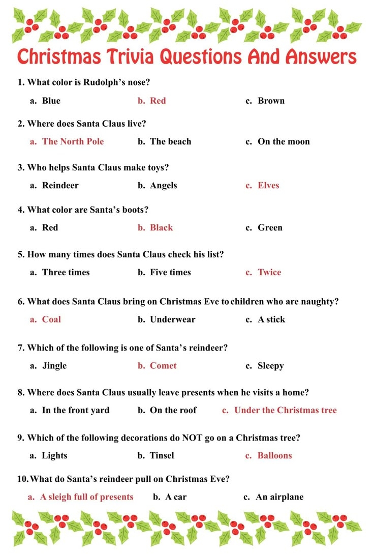 Holiday Trivia Questions And Answers Printables