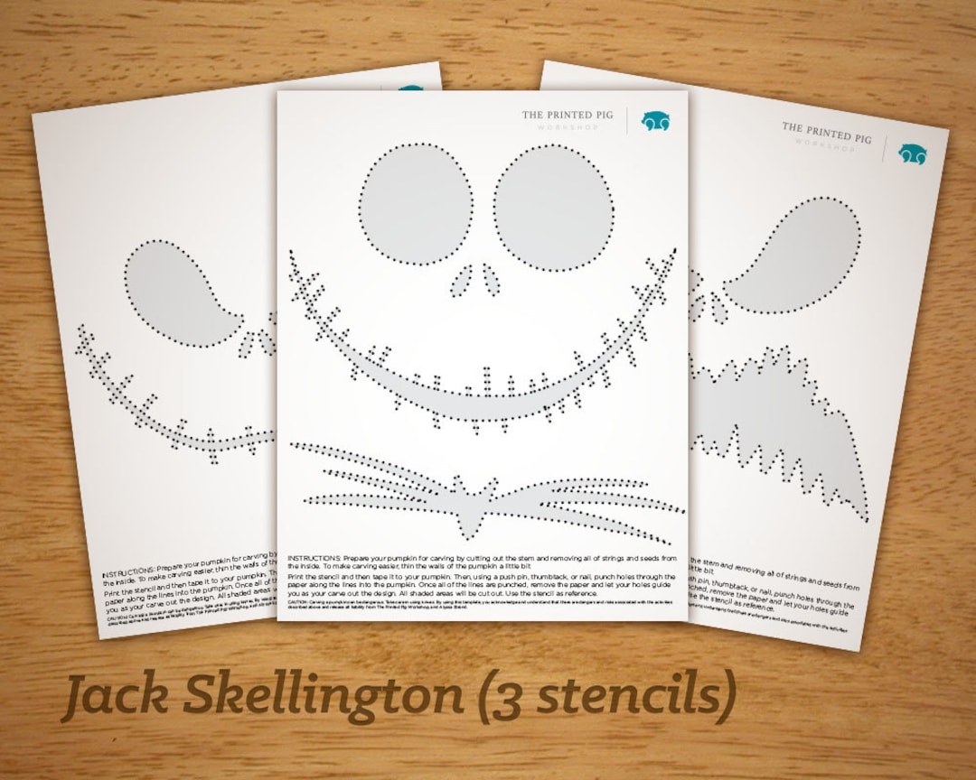 Printable Pumpkin Carving Pattern Jack Skellington Nightmare Before Christmas Set Etsy