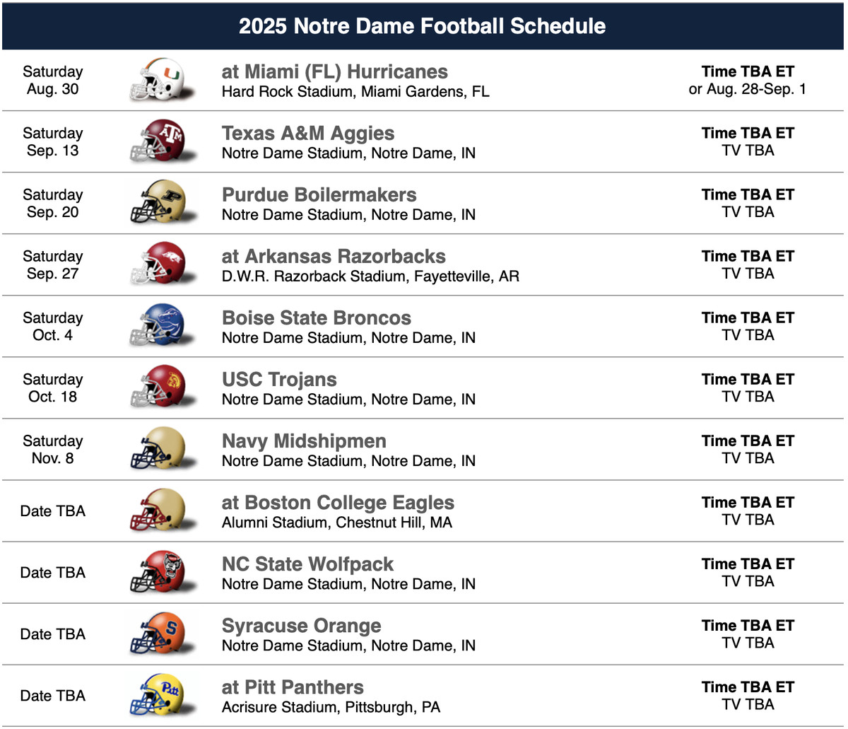 Notre Dame Football Fighting Irish Will Open 2025 Season At Miami One Foot Down