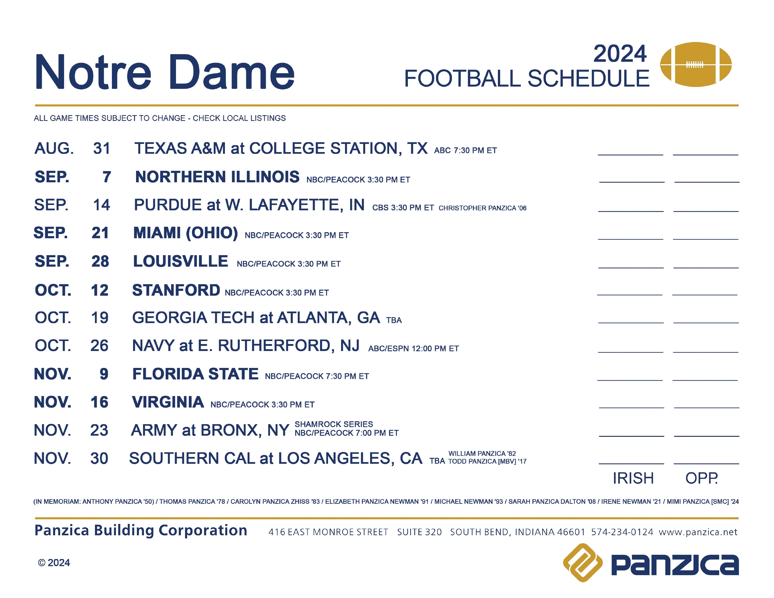 Notre Dame Releases 2024 Football Schedule Notre Dame Fighting Irish Official Athletics Website