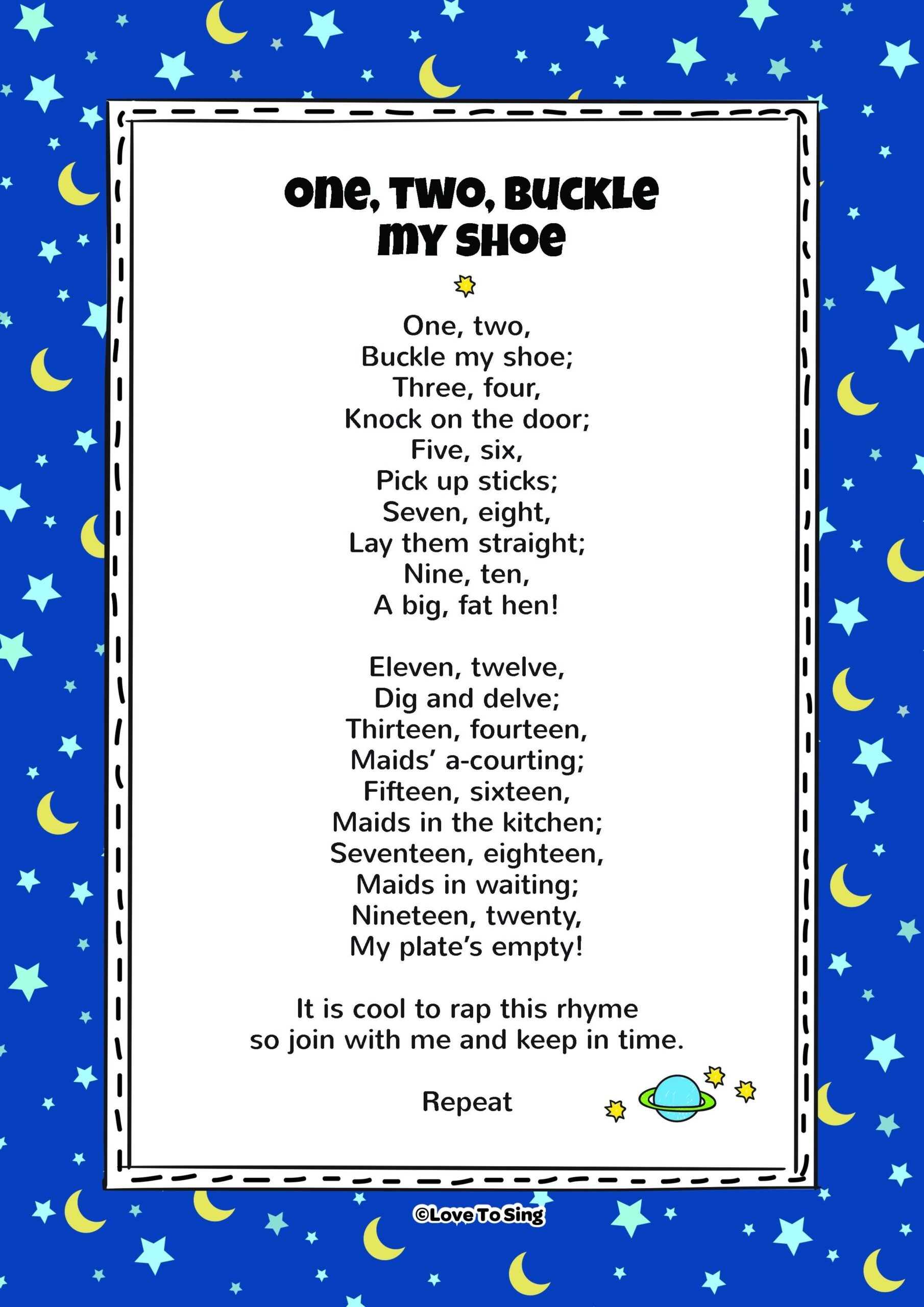 One Two Buckle My Shoe Nursery Rhyme Resources Little Learning Corner