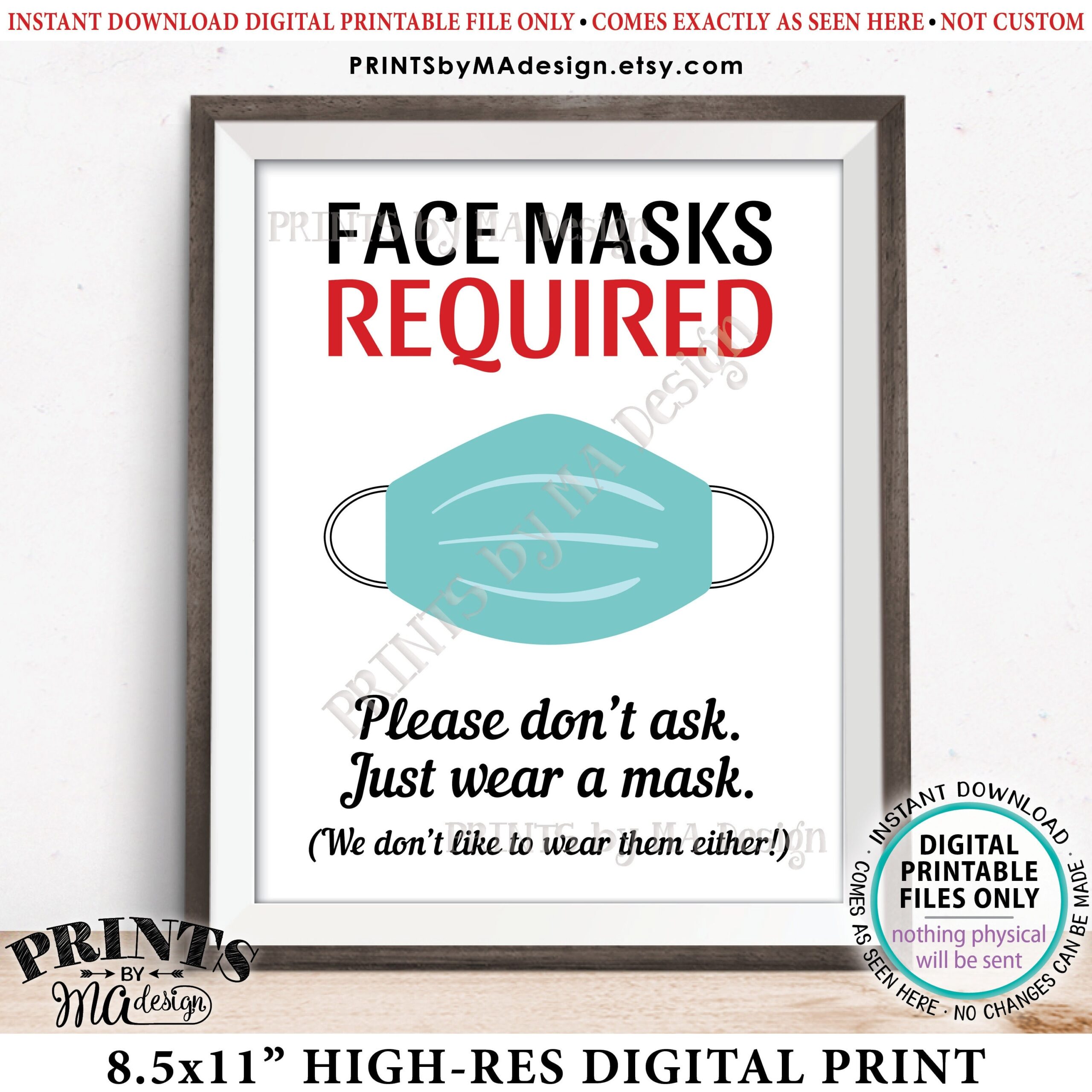 SALE Face Masks Required Sign Please Don t Ask Just Wear A Mask PRINTABLE 8 5×11 Sign
