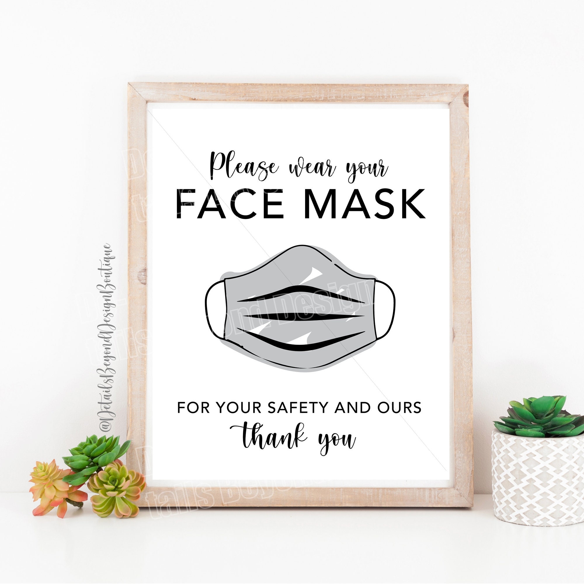 Wear A Mask Sign Printable INSTANT DOWNLOAD Please Wear A Mask Cover Your Face Mask Sign Mask Required Face Mask Required Etsy