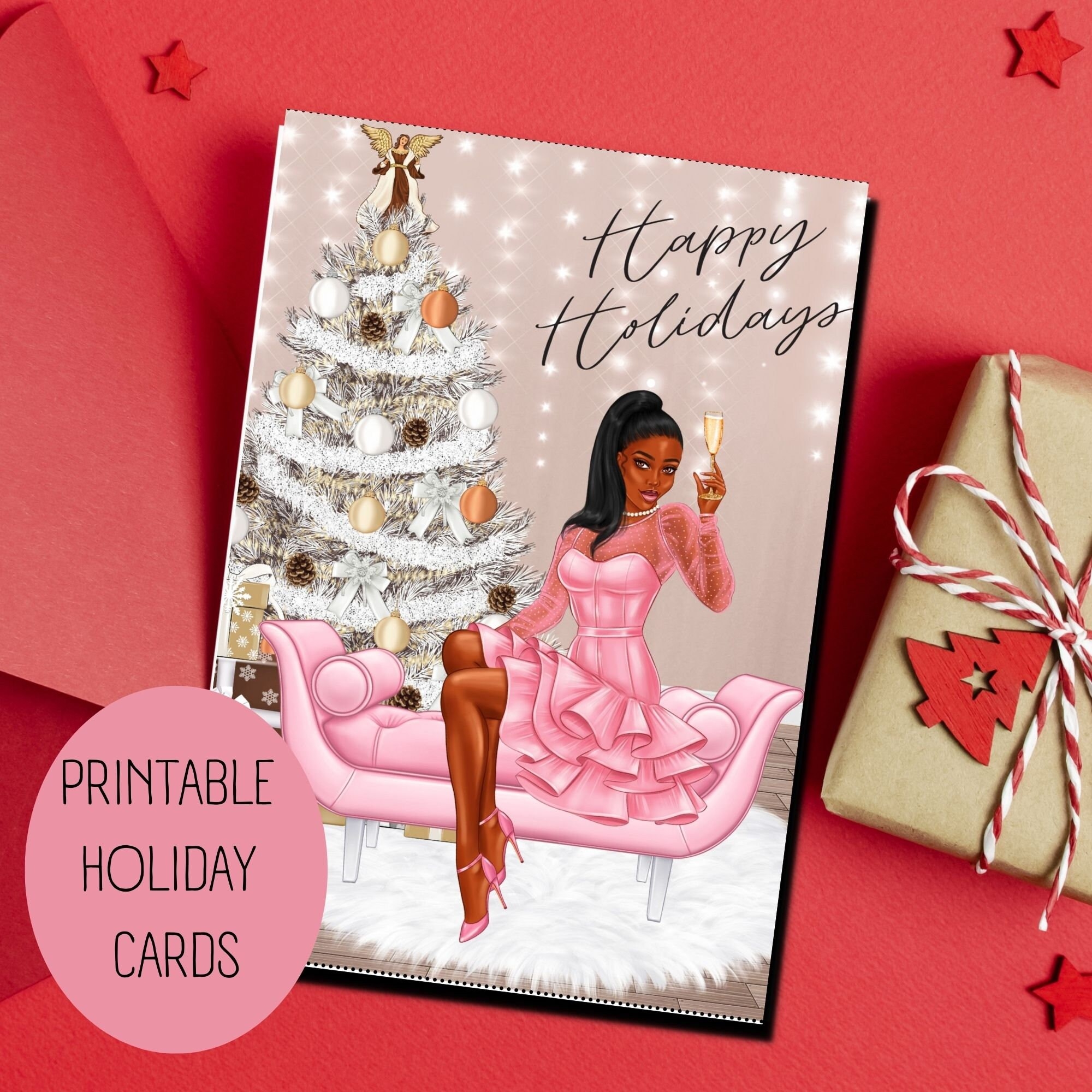 Christmas Card Holiday Card For African American Woman Sorority Christmas Gifts Printable Greeting Card For The Holidays Etsy