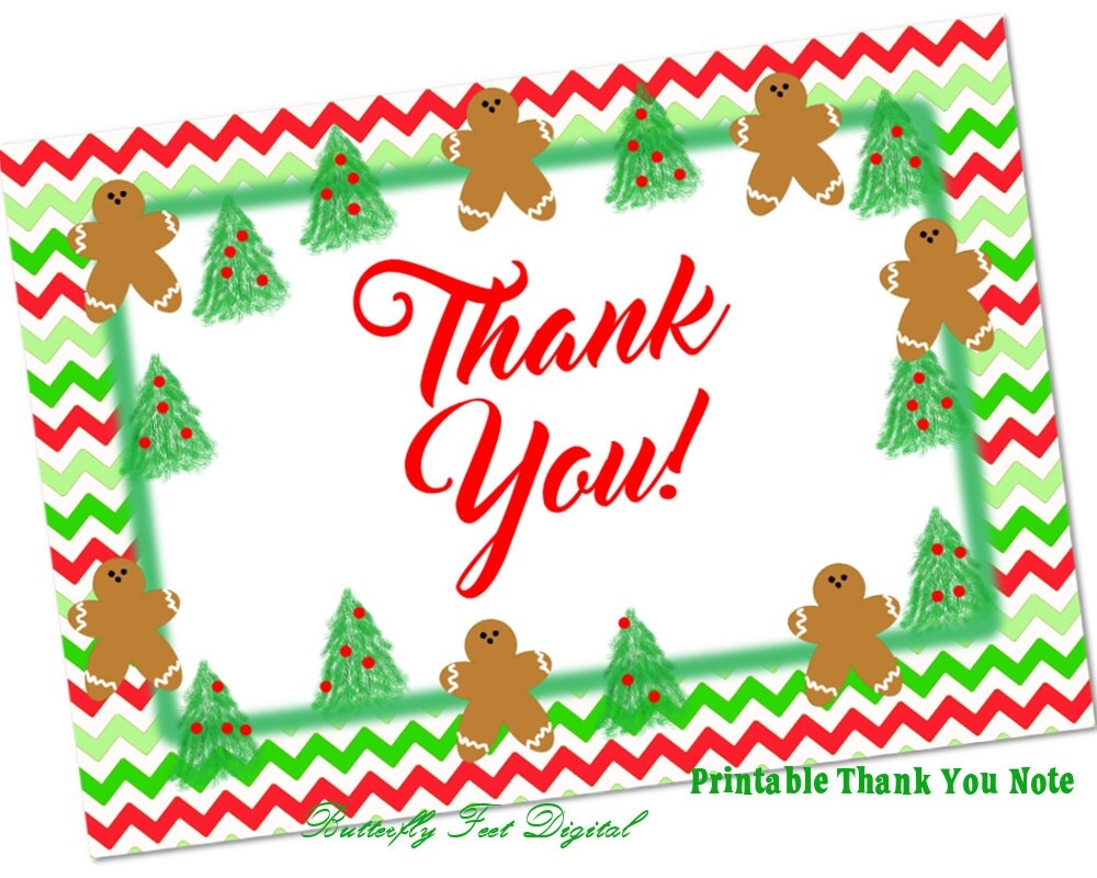 Printable Christmas Thank You Cards For Teachers Students Or Anyone 4 Cards Per Page Digital Download NOW Includes Editable Template Etsy