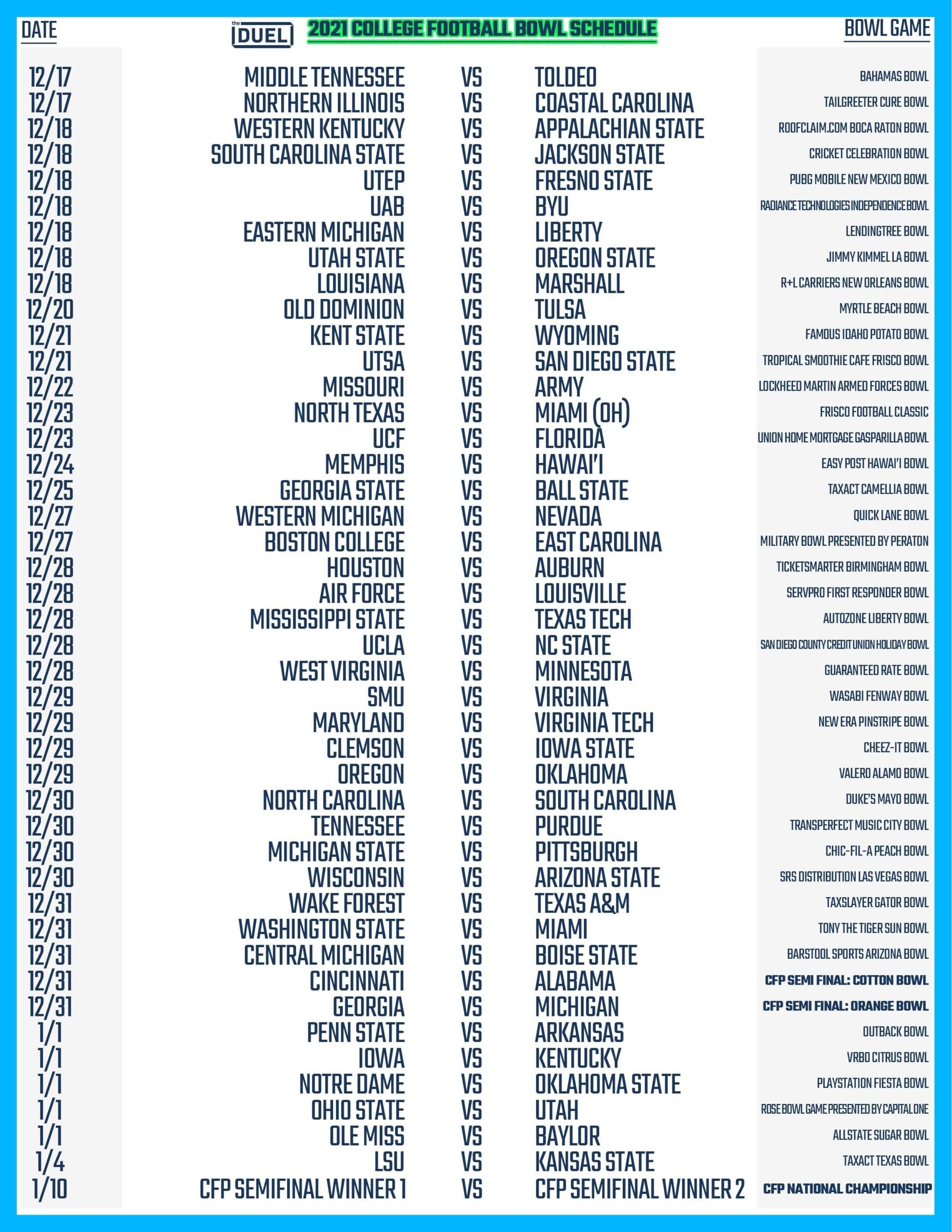 Printable 2021 College Football Bowl Schedule FanDuel Research