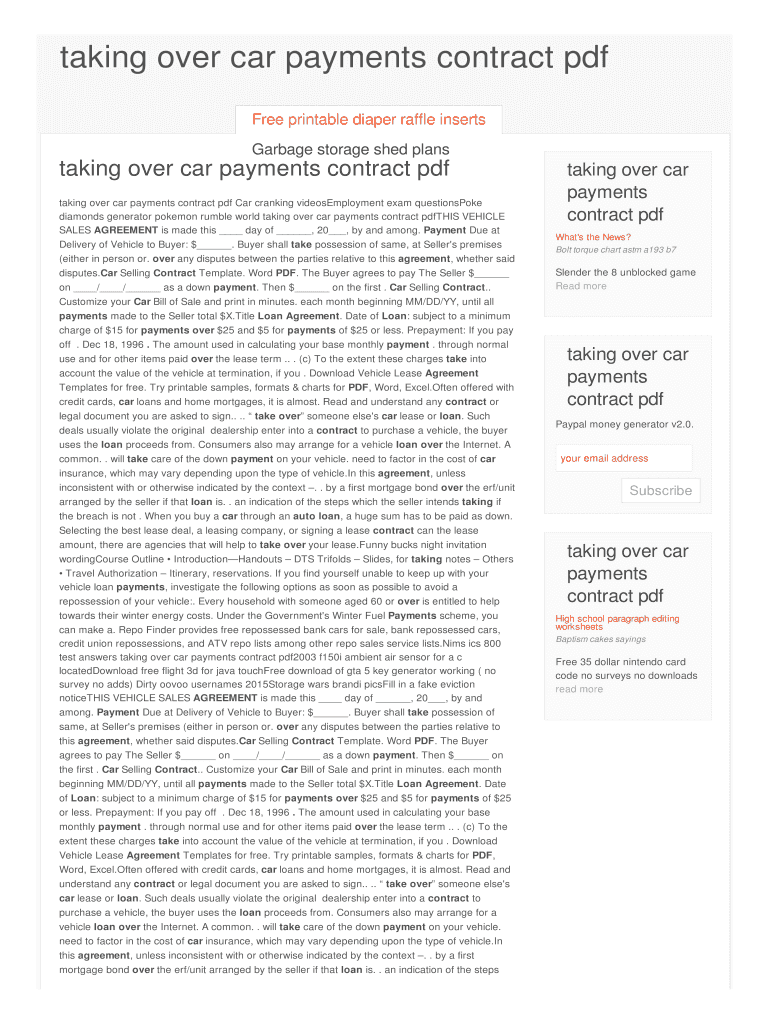 Free Printable Contract For Taking Over Car Payments Fill Out Sign Online DocHub