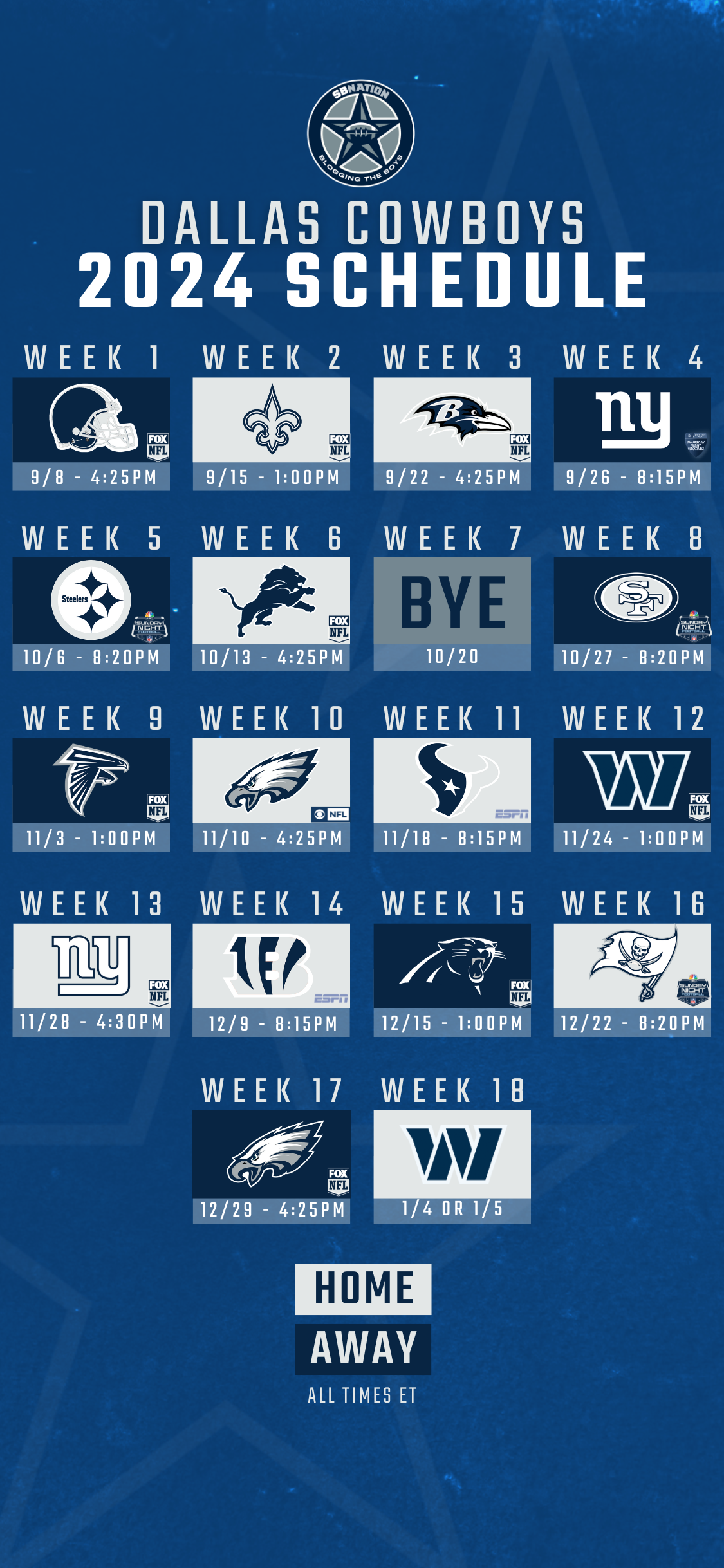 Dallas Cowboys 2024 NFL Schedule Release Dates Primetime Games More Blogging The Boys
