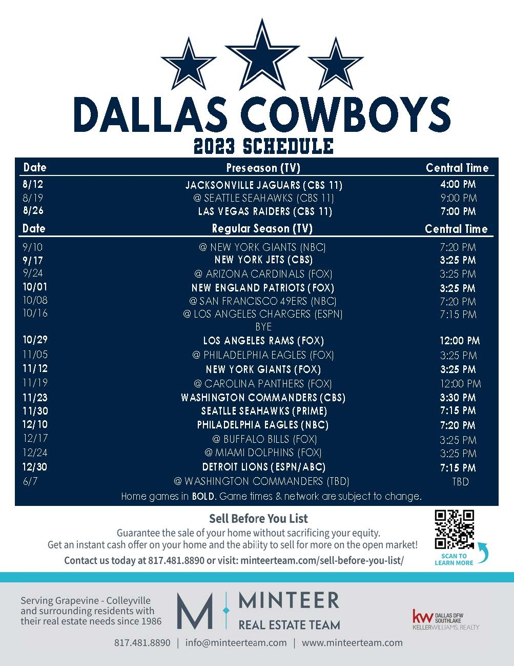 2023 Dallas Cowboys Schedule Minteer Real Estate Team
