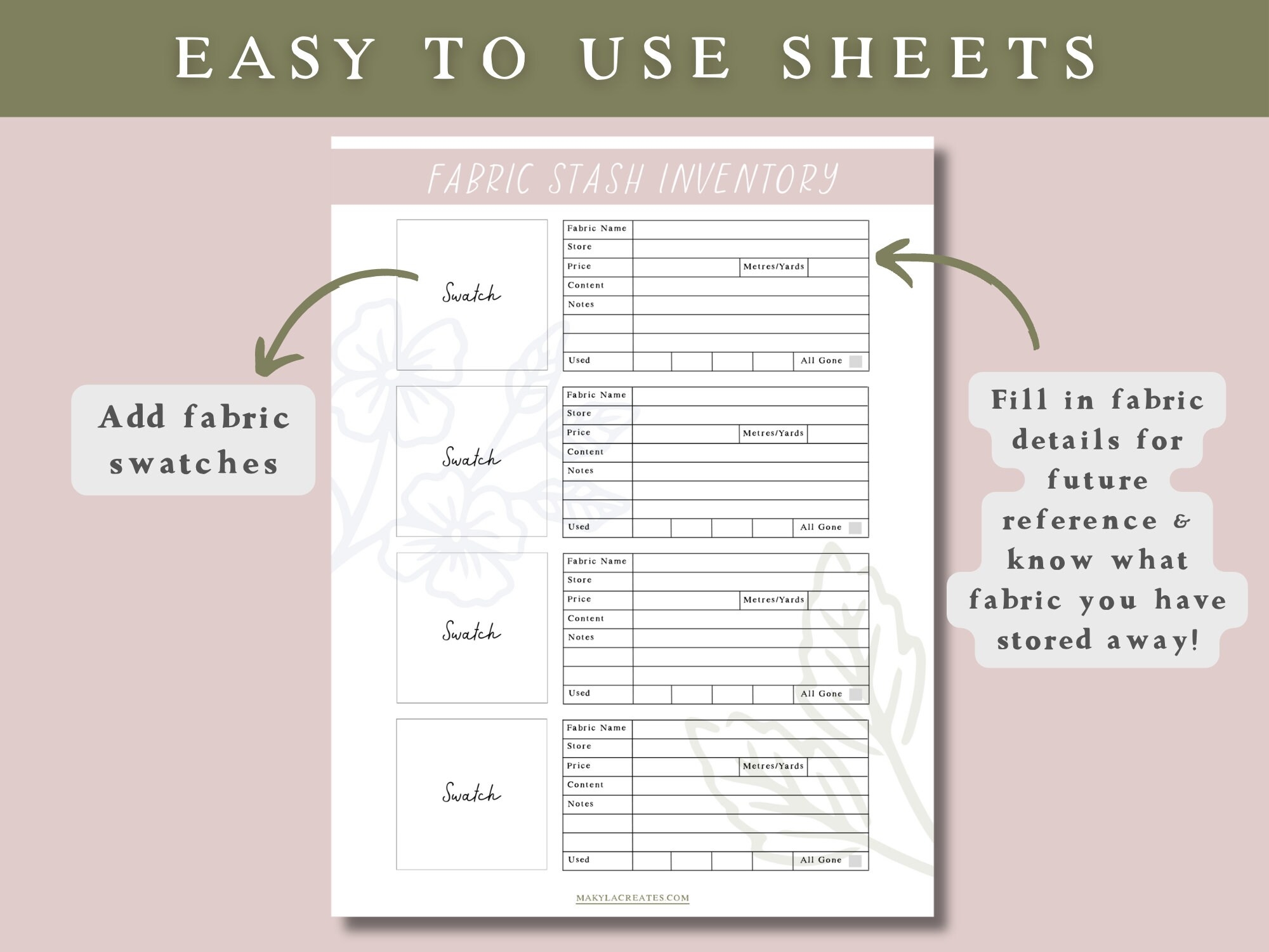 Get your hands on our printable fabric inventory sheets today and say goodbye to the hassle of managing your fabric collection. Take control of your materials and unleash your creativity without any unnecessary stress. Download now and start organizing like a pro!