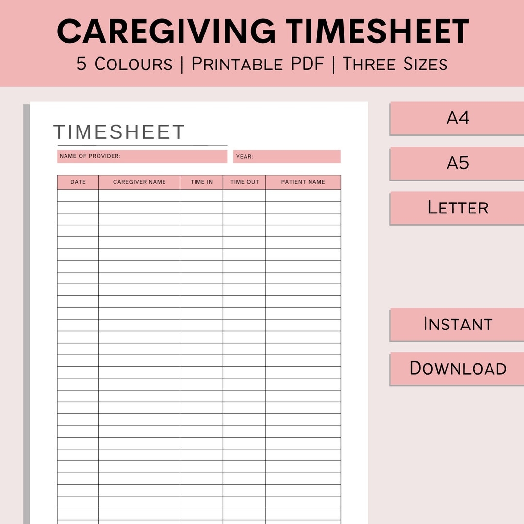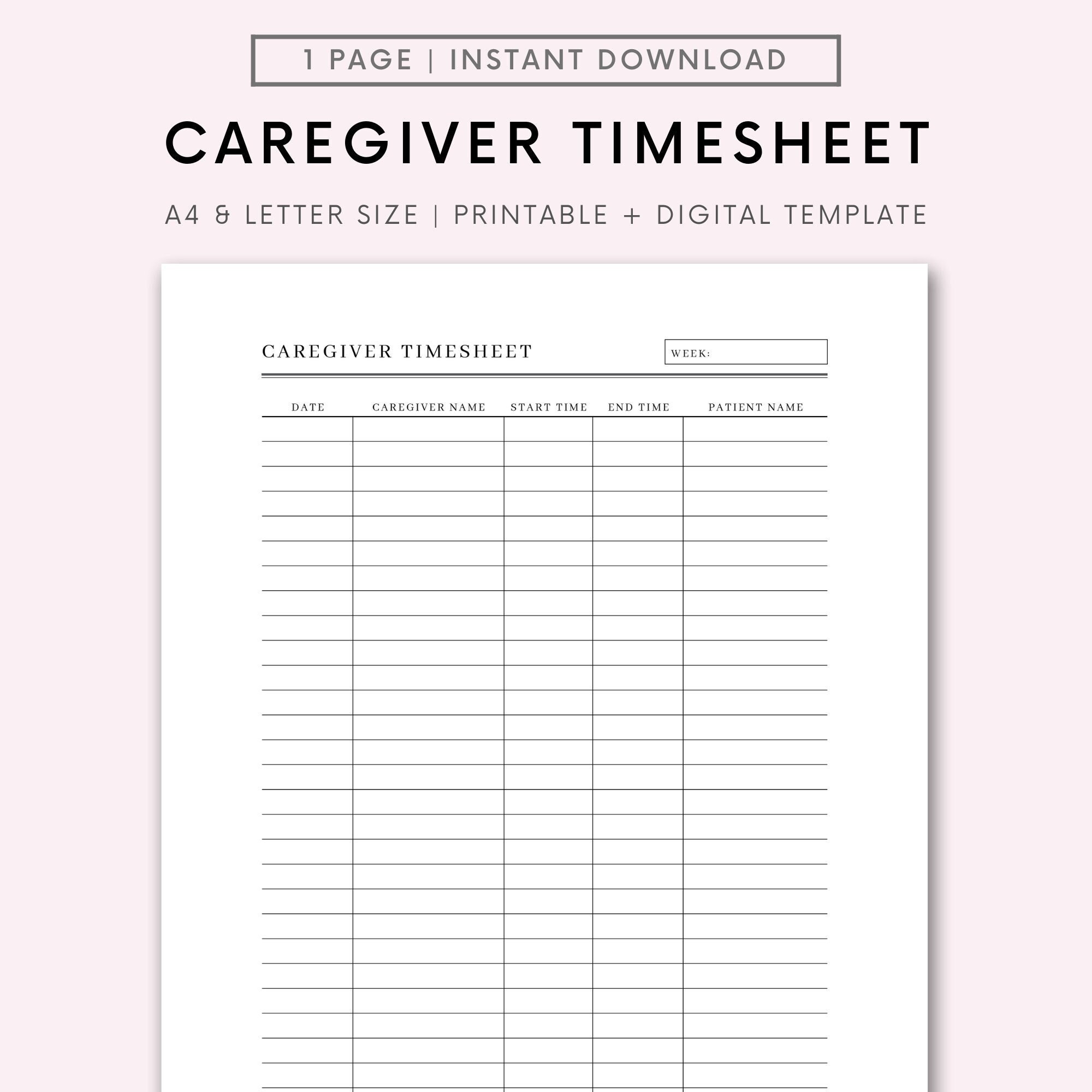 Caregiver Employee Timesheet Health Care Hours Worked Home Health Nurse Schedule Caregiver Shift Tracker PDF A4 A5 Letter Etsy