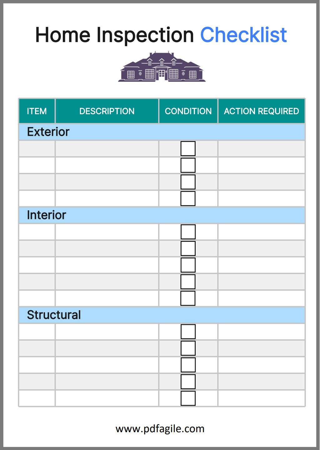 Home Inspection Checklist Template PDF Agile