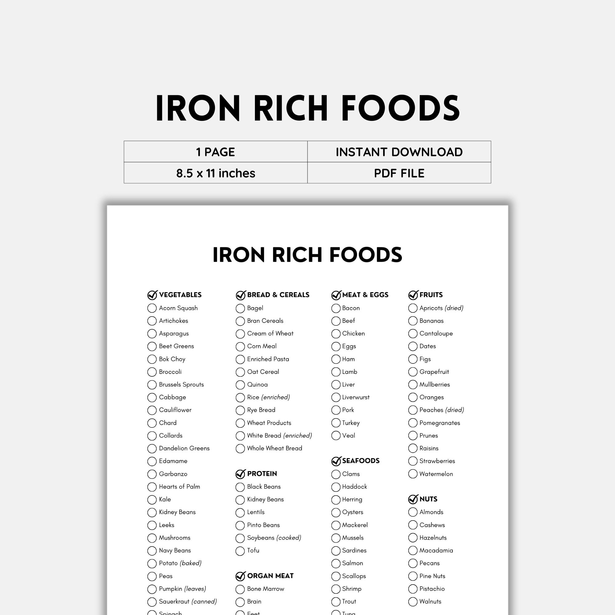 Iron rich Food Chart Digital Download PDF Ron Levels Chart Plant Food Iron Rich Iron Rich Plant Diet Iron In Diet Etsy