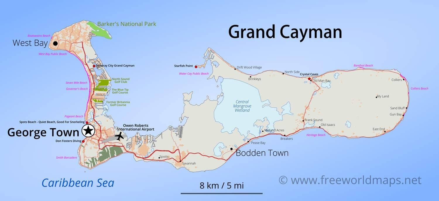Cayman Islands Map Geographical Features Of Cayman Islands Of The Caribbean Freeworldmaps
