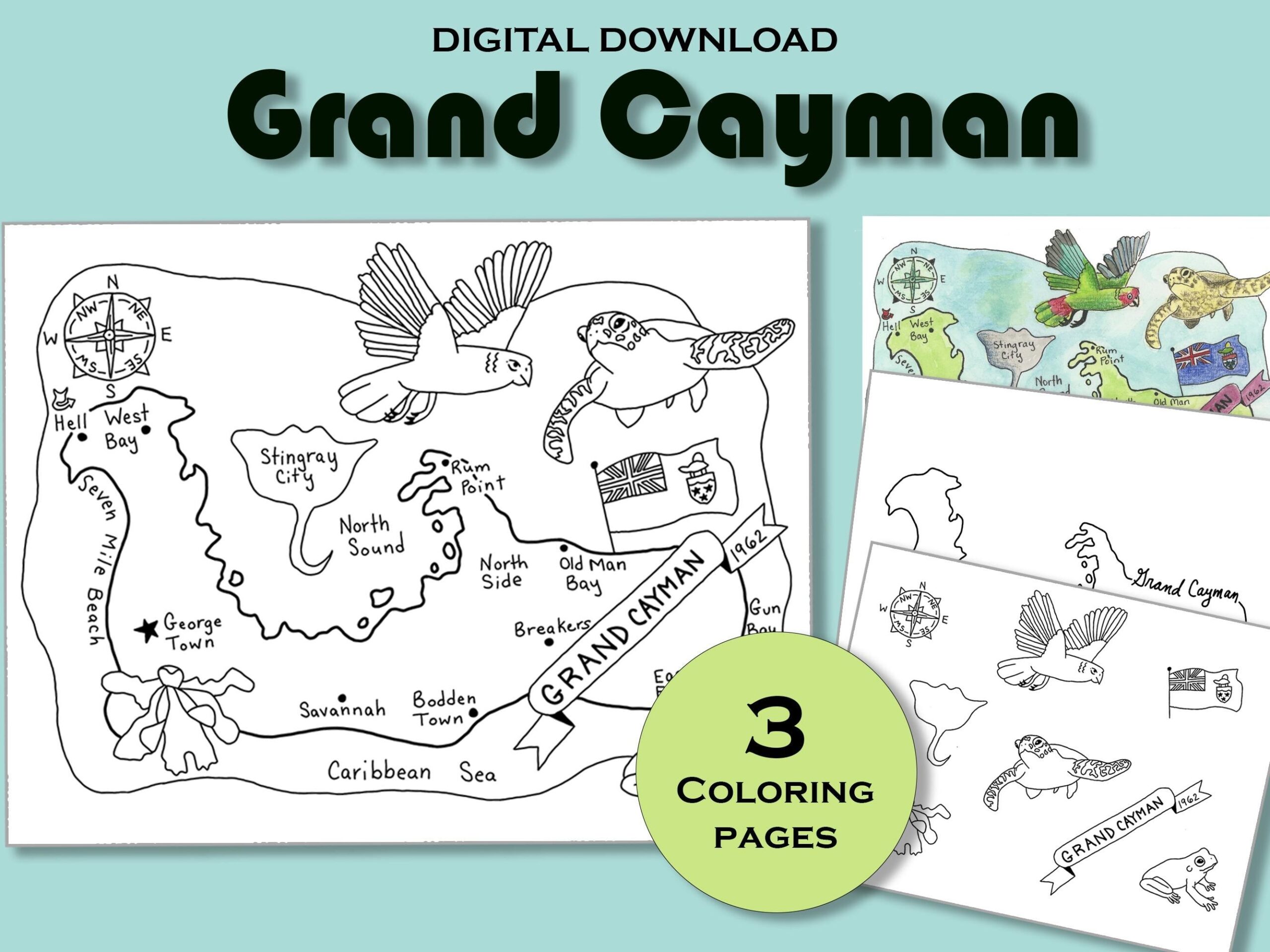 Grand Cayman Coloring Page Printable Country Map Worksheet Travel Poster Print Education Packet Caribbean Geography Kids Activity Book Etsy