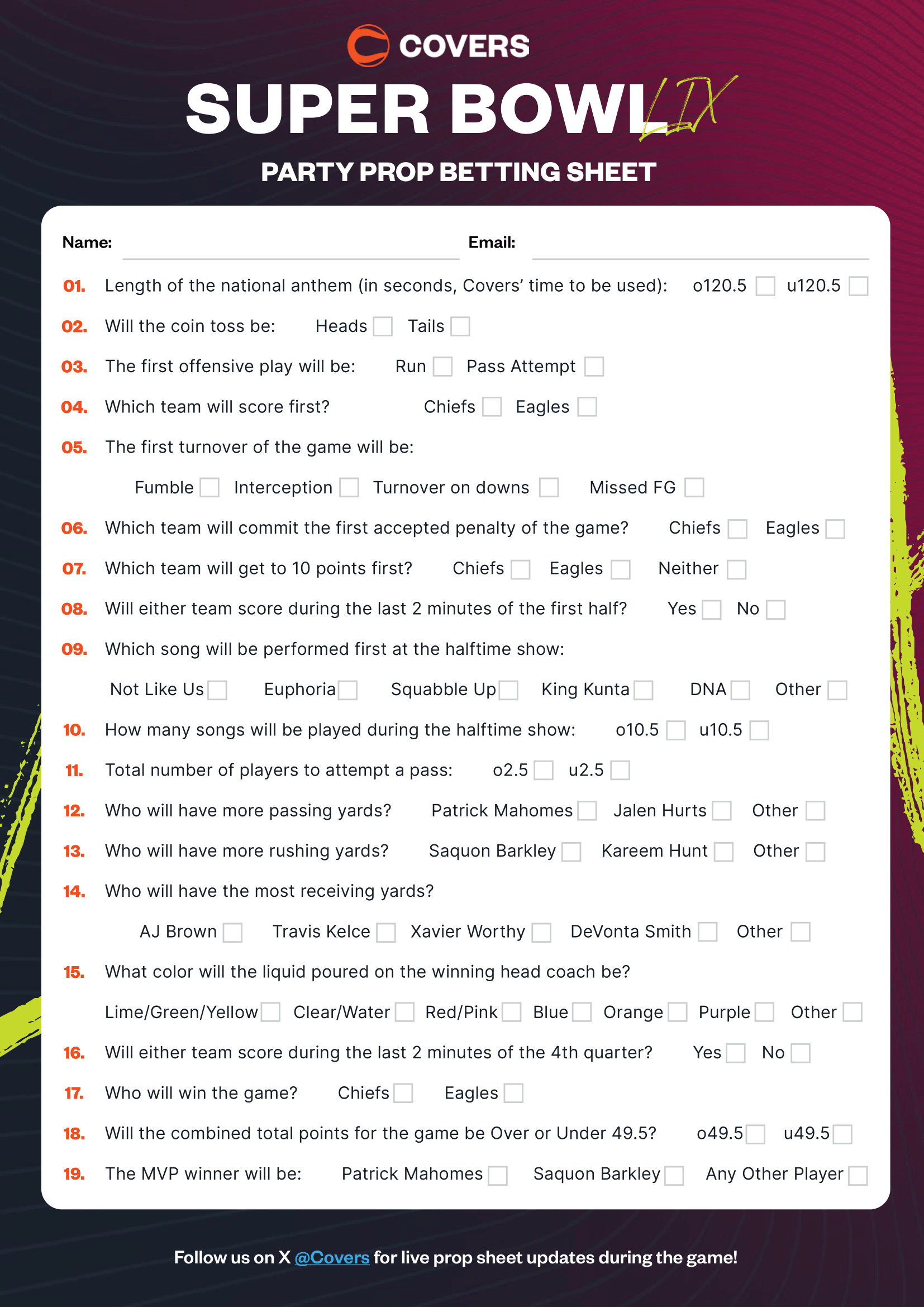 Super Bowl Prop Sheet The Best Printable Super Bowl Party Prop Sheet For 2025 Oddschecker