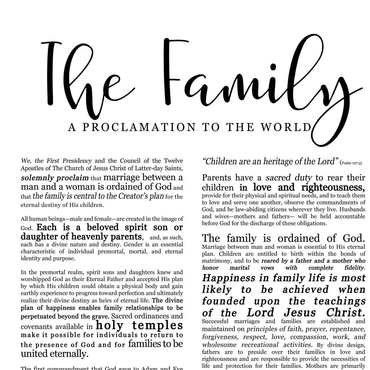 The Family Proclamation PRINTABLE PDF Etsy