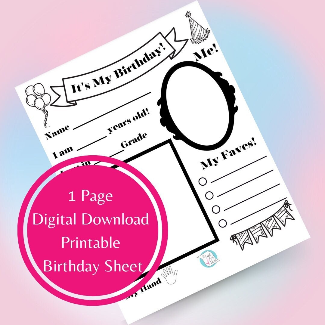 Birthday Sheet Child Birthday Student Birthday About Me Sheet Birthday Fact Sheet Keepsake Birthday For Child Birthday For Student Etsy